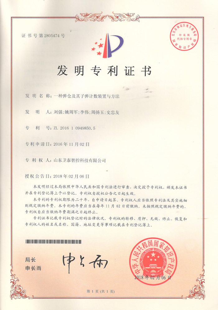 一種槍支電池節(jié)能方法及裝置-發(fā)明專利證書