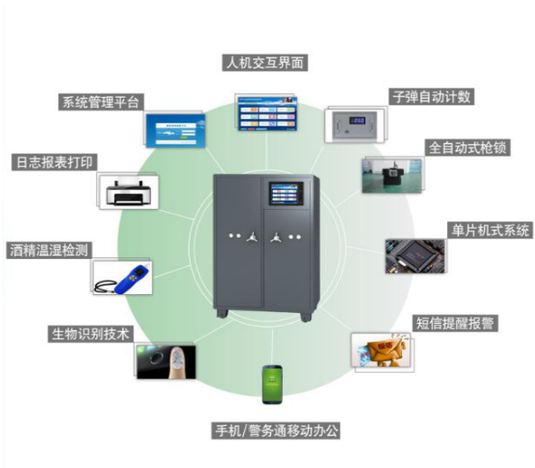 智能型槍支彈藥專(zhuān)用保險(xiǎn)柜不同于傳統(tǒng)槍柜,屬于新型網(wǎng)絡(luò)槍柜,其中應(yīng)用的主要技術(shù)如下: