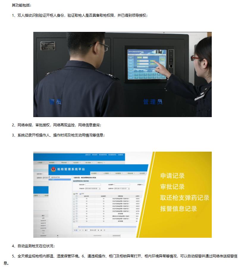 如槍支和彈藥未能在指定時(shí)間交還或遭到破壞違規(guī)開(kāi)啟,系統(tǒng)還會(huì)向有關(guān)人員發(fā)出短信等提醒與報(bào)警。